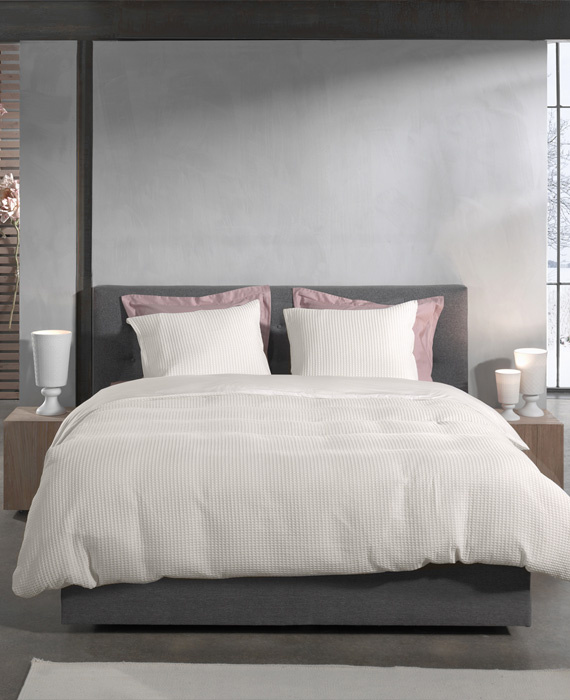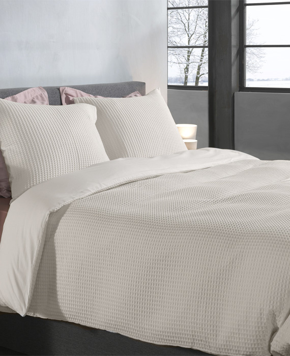 Heckettlane dekbedovertrek Vafala heeft aan de bovenzijde een stijlvol tafelpatroon en een heerlijk gladde onderzijde.