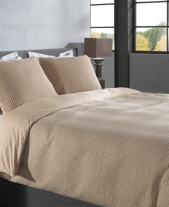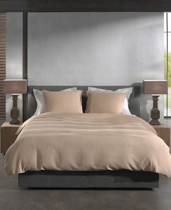 Heckettlane dekbedovertrek Vafala heeft aan de bovenzijde een stijlvol tafelpatroon en een heerlijk gladde onderzijde.