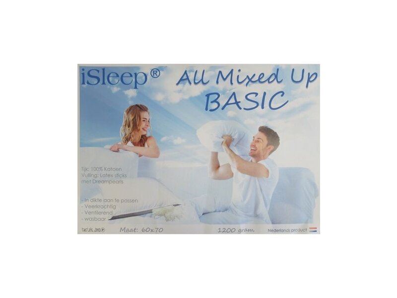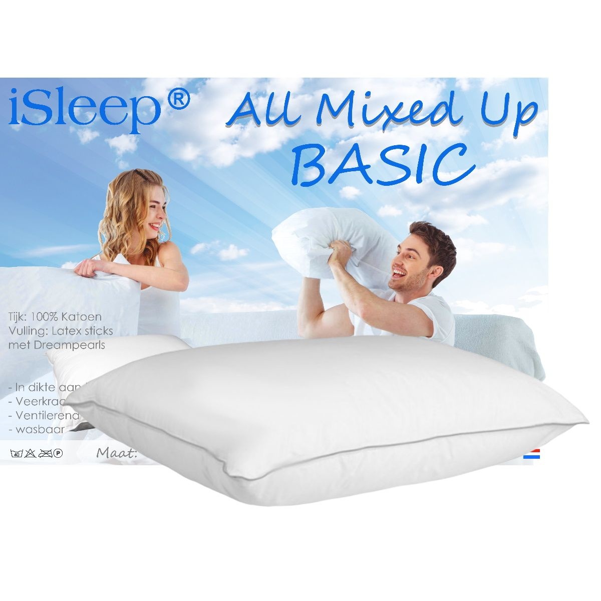 Het iSleep All Mixed Up Basic kussen is gevuld met 1200 gram Dreampearls kleine latex sticks er doorheen. Dreampearls is een uiterst veerkrachtige polyester vezel-bolletje en de toegevoegde latex staafjes zorgen voor nog meer stevigheid.