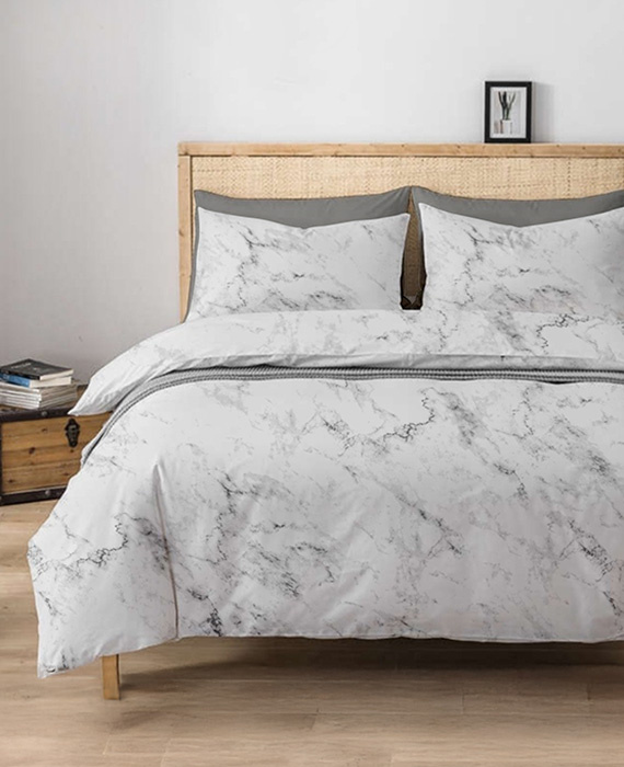 Breng rust en verfijning in je slaapkamer met het iSleep dekbedovertrek Emma in een elegante grijze marmerprint. Dit overtrek is gemaakt van 100% hoogwaardig katoensatijn en voelt zacht en comfortabel aan. Dankzij de ademende en vochtregulerende eigenschappen van katoen slaap je de hele nacht fris en ontspannen.