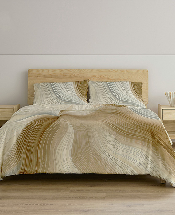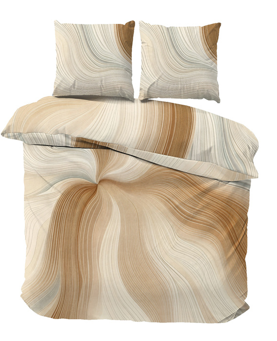 Dit opvallende overtrek heeft een artistiek, wervelend patroon in natuurlijke tinten zoals zand, crème, beige en lichtgrijs. De fijne, vloeiende lijnen creëren een dynamisch visueel effect dat doet denken aan houtnerven of marmer.Het overtrek wordt geleverd met bijpassende kussensloop(en) en is voorzien van een dubbele instopstrook over de gehele breedte, waardoor je dekbedovertrek gemakkelijk is in te stoppen onder het matras. Daarnaast is het overtrek wasbaar en geschikt voor de droger.