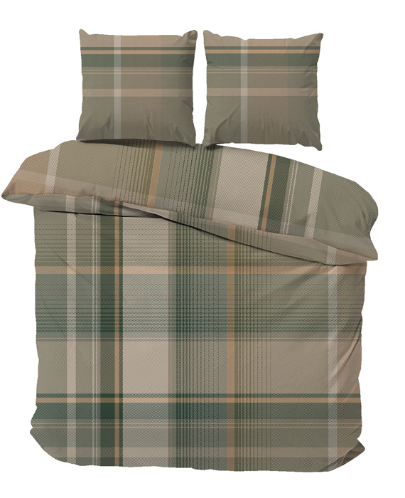 Dit stijlvolle overtrek heeft een klassiek ruitpatroon in zachte tinten groen, beige en zand, perfect voor een landelijke of moderne inrichting.Het overtrek wordt geleverd met bijpassende kussensloop(en) en is voorzien van een dubbele instopstrook over de gehele breedte, waardoor je dekbedovertrek gemakkelijk is in te stoppen onder het matras. Daarnaast is het overtrek wasbaar en geschikt voor de droger.