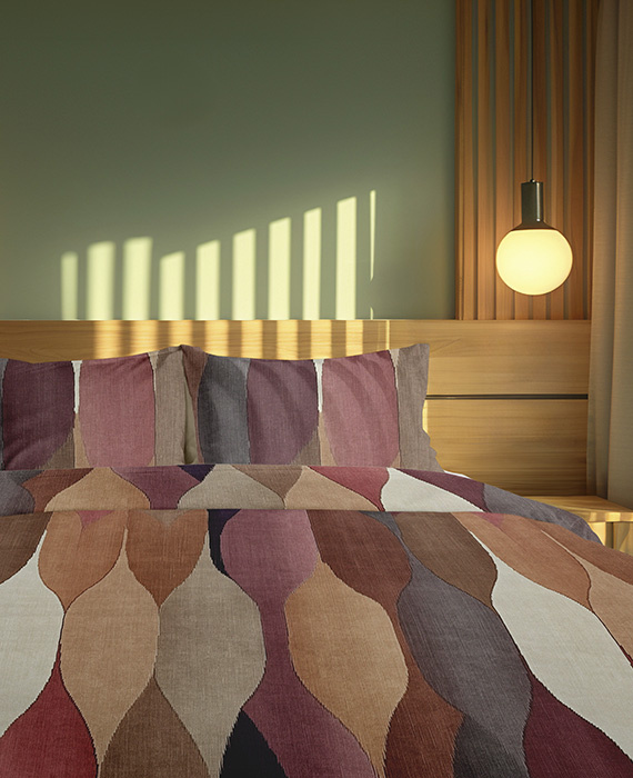 iSleep dekbedovertrek Noor met retro golvend patroon brengt een speelse en warme sfeer in de slaapkamer. De herhalende vormen en rijke kleuren geven het dessin een vintage uitstraling met een moderne twist. Ideaal voor liefhebbers van retro en designinterieurs.