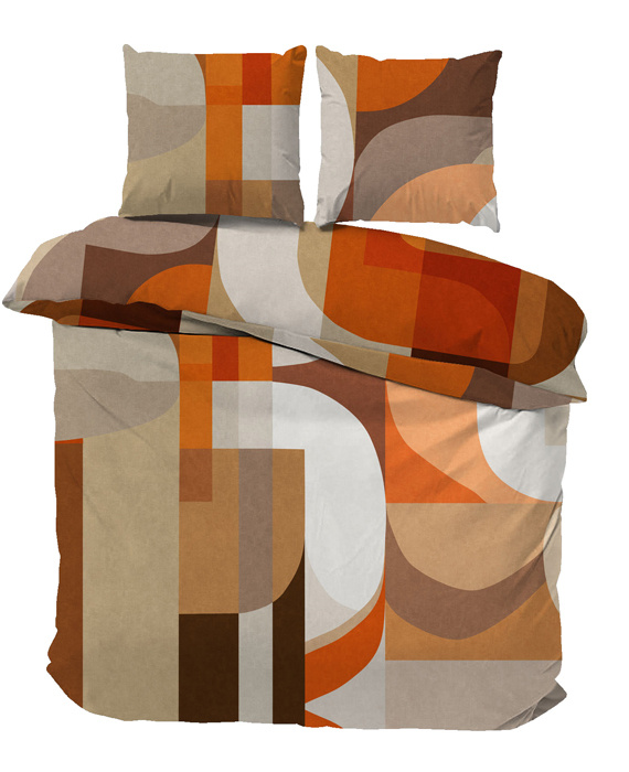 Dit opvallende overtrek combineert retro en modern met een krachtig geometrisch patroon in warme aardetinten zoals oranje, bruin, beige en zandkleur. Een echte eyecatcher voor wie durft te kiezen voor een uniek design.Het overtrek wordt geleverd met bijpassende kussensloop(en) en is voorzien van een dubbele instopstrook over de gehele breedte, waardoor je dekbedovertrek gemakkelijk is in te stoppen onder het matras. Daarnaast is het overtrek wasbaar en geschikt voor de droger.