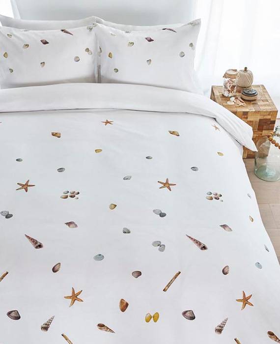 Mooi dekbedovertrek van Marjolein Bastin met handgetekende schelpen en zeesterren ontworpen door Marjolein Bastin. Door het gebruik van 100% hoogwaardige katoen voelt dit overtrek zacht en comfortabel aan en blijft deze mooi na keer op keer wassen. Met een dubbele instopstrook over de gehele breedte en ook geschikt voor extra lange dekbedden. Inclusief bijpassende kussensloop(en).